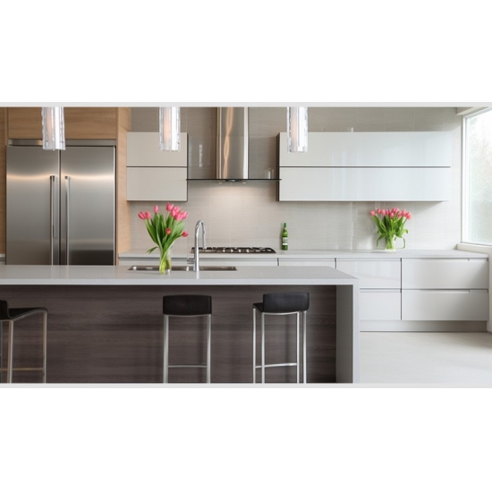 El Cuarzo Brillante Blanco Nieve 2005 es un impactante reflejo de blancos y motas gélidas que aportan interés y encanto a cualquier espacio. Para cocinas, baños y cualquier lugar donde desee un toque de sobria elegancia, este cuarzo premium es la opción perfecta. Este cuarzo duradero, de bajo mantenimiento y resistente a las manchas también se recomienda para pisos, salpicaderos y paredes decorativas tanto en viviendas como en locales comerciales.