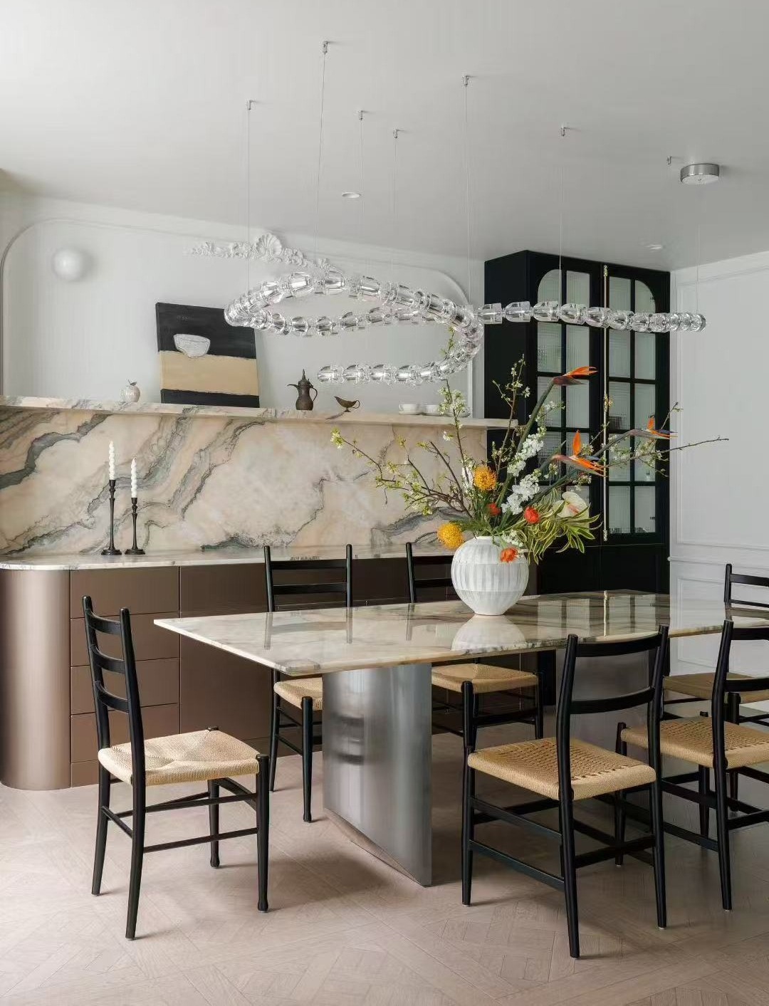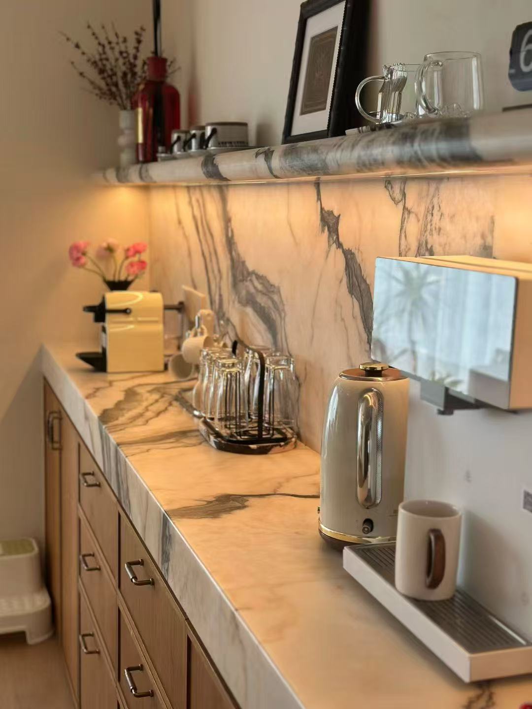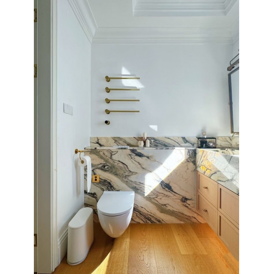 Mármol Ondulare Rosso de Portugal tiene Un tono rosa ahumado único, de baja saturación, con una textura delicadamente entrelazada que evoca el resplandor del atardecer que acaricia suavemente una galaxia infinita. Es a la vez intrincado y exquisito, y cada línea narra la historia de la armoniosa coexistencia entre la naturaleza y los sueños.