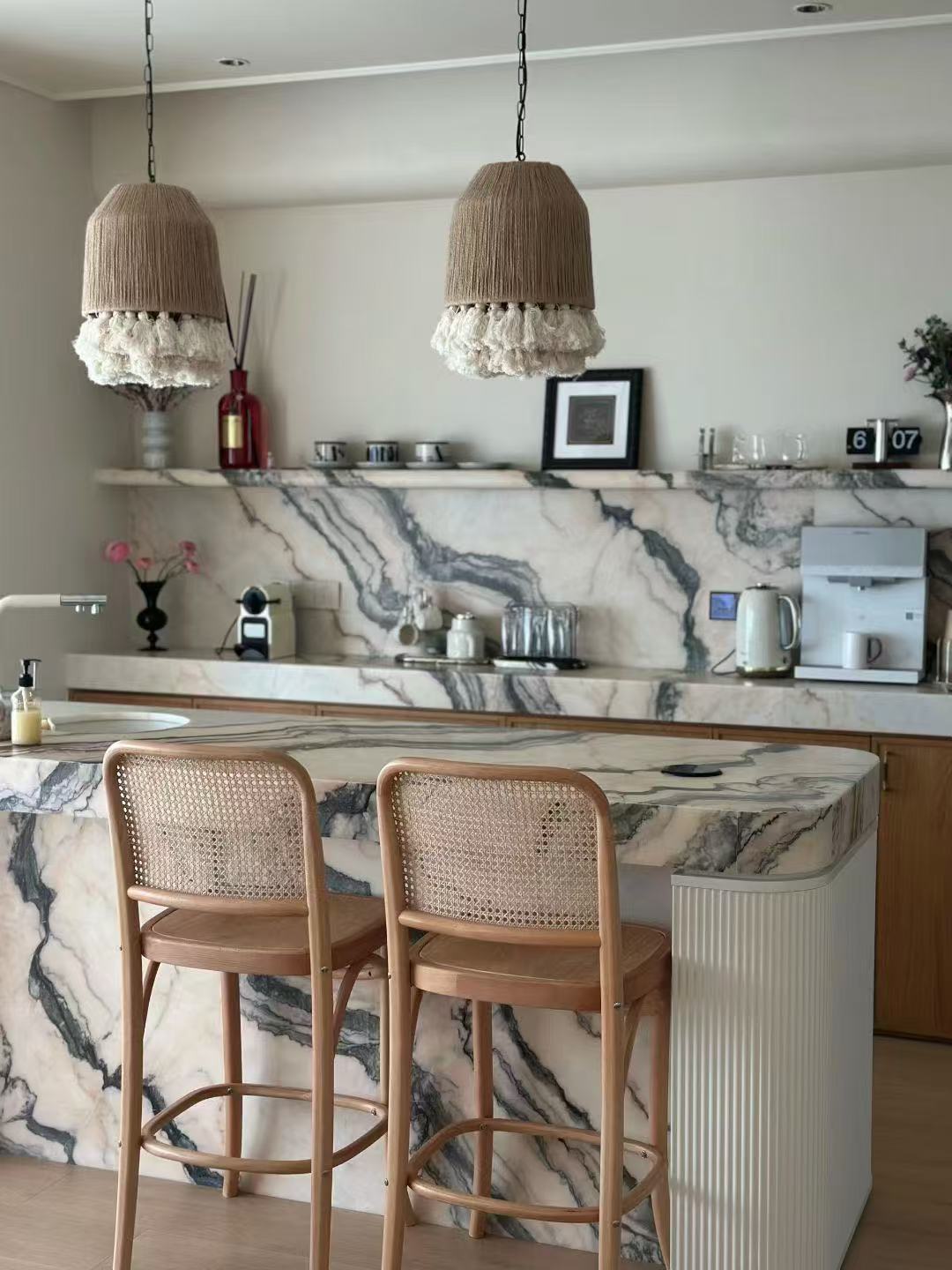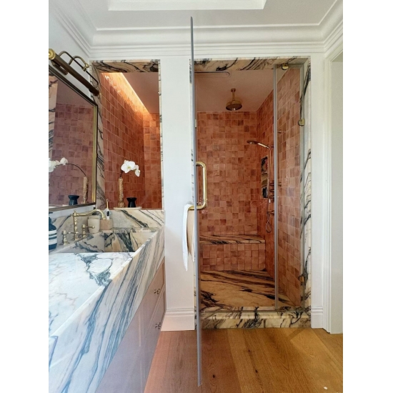 Mármol Ondulare Rosso de Portugal tiene Su delicada textura entrelazada evoca el suave resplandor de un sol poniente que acaricia una galaxia infinita. Intrincada pero refinada, cada línea narra una historia de armoniosa coexistencia entre la naturaleza y la fantasía. Este color, delicado y elegante, cautiva al instante al espectador, sumergiéndolo en un romance inesperado. No es solo un adorno para el espacio, sino también un vehículo para las emociones, llenando cada rincón del hogar con una atmósfera cálida y onírica.
