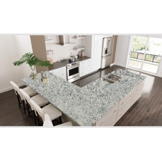 Winky Sparkle Quartz White es una piedra de cuarzo artificial con un tratamiento especial que se diferencia de otras series por su aspecto más brillante. Este cuarzo aporta profundidad y textura al instalarse en paredes, suelos, encimeras, etc. Se puede utilizar para crear impresionantes piezas de pared y salpicaderos de lavabos en baños y cocinas. Este cuarzo funciona muy bien en zonas húmedas gracias a sus propiedades antigérmenes y resistentes a la humedad.
