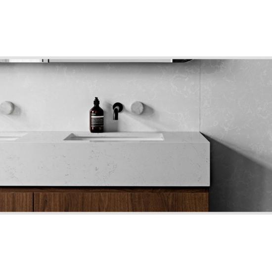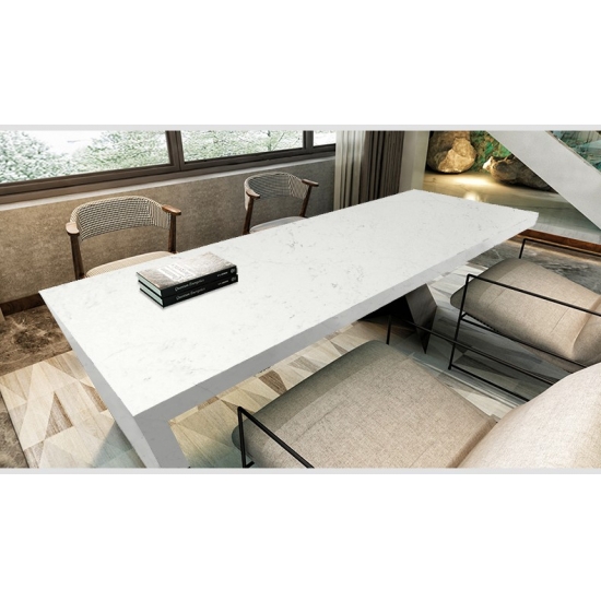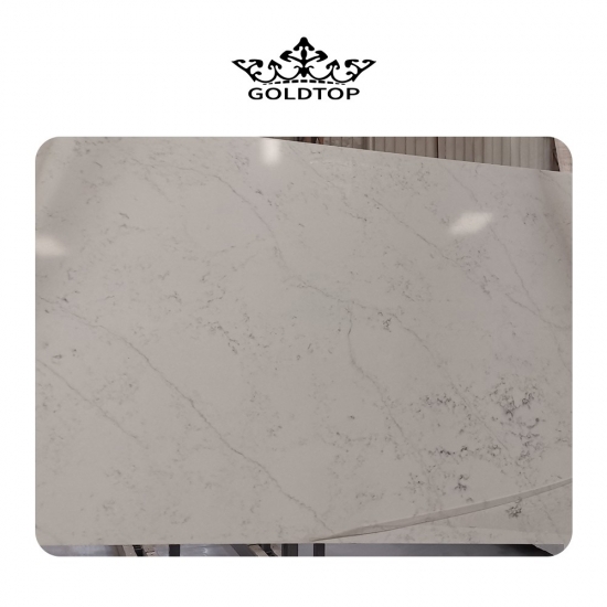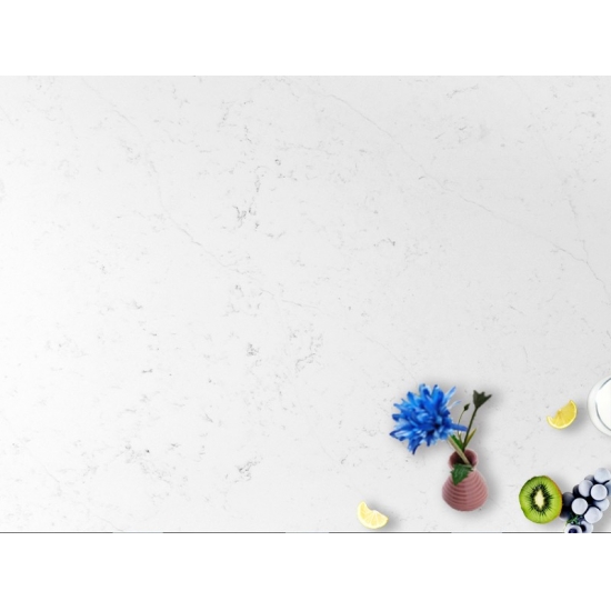 Losa de cuarzo de mármol de Carrara oceánico 4002 Presenta una apariencia refinada y elegante con un suave fondo blanco acentuado por delicadas vetas grises inspiradas en el mármol natural de Carrara. Las vetas fluidas crean un movimiento sereno, similar al del océano, en la superficie, aportando profundidad a la vez que conserva una estética limpia y atemporal. Esta losa de cuarzo irradia un lujo sobrio, equilibrando la belleza clásica con la durabilidad moderna, lo que la convierte en la opción ideal para cocinas, baños y espacios interiores sofisticados que buscan una apariencia luminosa y elegante.