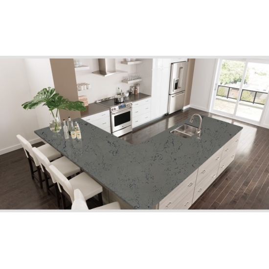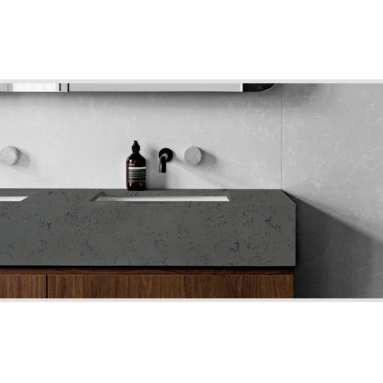 Losa de cuarzo de mármol gris Bianco 4008 Presenta una apariencia refinada y elegante, con una base blanca suave acentuada con sutiles vetas grises inspiradas en el mármol natural. La superficie ofrece una estética limpia y equilibrada, donde el sutil movimiento de las vetas aporta profundidad sin opacar el diseño general. Sus tonos claros y neutros crean una sensación luminosa y diáfana, lo que la hace muy versátil tanto para interiores modernos como clásicos. Esta losa de cuarzo aporta sofisticación atemporal y lujo discreto a cualquier espacio residencial o comercial que realce.