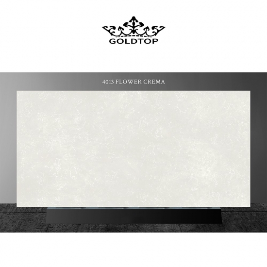 Losa de cuarzo de mármol crema flor 4013 Presenta una apariencia cálida y elegante con una base suave y cremosa, acentuada por delicadas vetas naturales similares al mármol. La superficie irradia un encanto refinado y atemporal, con delicados patrones que fluyen orgánicamente por la losa, creando una sensación equilibrada de movimiento y armonía. Esta losa de cuarzo está diseñada para aportar calidez y sofisticación a cualquier espacio, lo que la convierte en la opción ideal tanto para interiores modernos como clásicos.