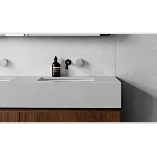 4043 Losa de cuarzo mármol de hormigón fresco Presenta una estética limpia y moderna inspirada en el aspecto natural del hormigón. Su suave fondo gris se superpone con sutiles variaciones tonales y delicadas texturas marmóreas, creando un efecto visual tranquilo y equilibrado. La superficie se siente sobria pero refinada, ofreciendo una elegancia contemporánea que aporta una sensación de simplicidad y sofisticación a cualquier espacio. Este cuarzo es ideal para interiores modernos, aportando un encanto urbano y atemporal a cocinas, baños y entornos comerciales.