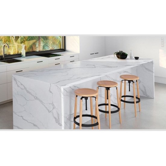 La losa de cuarzo 5012 Mvjay presenta un carácter audaz y dinámico, definido por una base de color carbón intenso que se entrelaza con un marcado veteado blanco. El patrón de alto contraste crea un potente impacto visual y una sensación de fluidez y energía. Esta losa ofrece una imagen moderna y vanguardista, ideal para crear puntos focales en interiores contemporáneos e infundir a cualquier espacio un toque de lujo y seguridad.