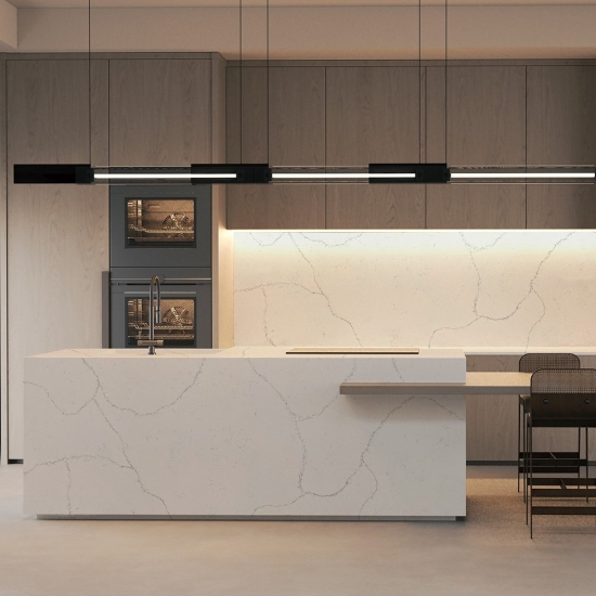 Este cuarzo es perfecto para una amplia gama de aplicaciones, desde encimeras e islas de cocina hasta paredes decorativas y tocadores. Su veteado audaz aporta carácter y sofisticación, convirtiéndolo en el punto focal de cualquier diseño. Ya sea combinado con elegantes tonos metálicos o cálidos tonos de madera, el Cuarzo Calacatta Fiorina 5125 realza la elegancia de cualquier espacio.