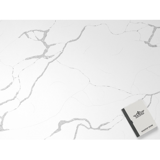 El cuarzo Calacatta está hecho de componentes naturales, pero es resistente, duradero y de baja porosidad, lo que hace que los productos de piedra de cuarzo sean prácticamente resistentes al desgaste. Su durabilidad, comodidad y un diseño uniforme son las principales razones de su creciente popularidad. El cuarzo está compuesto en un 90 % por piedra natural; el resto se compone de pegamento, tintes y aditivos que mejoran sus propiedades técnicas. Su permeabilidad al agua y resistencia a las manchas realzan la belleza del cuarzo.