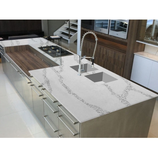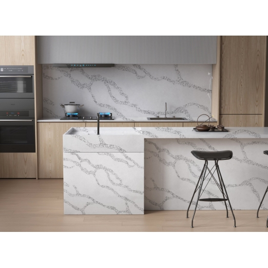 5031 Calacatta Roma es una piedra artificial de alta gama diseñada para emular el lujoso aspecto del clásico mármol Calacatta. Presenta un fondo blanco brillante con vetas grises o doradas, creando una apariencia sofisticada y elegante. Esta piedra artificial ofrece una superficie pulida y lisa, duradera y de bajo mantenimiento. Ideal para encimeras, salpicaderos, suelos y revestimientos de paredes.