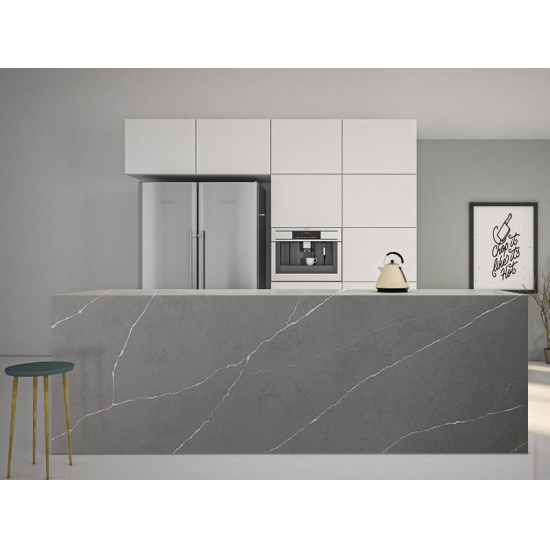 5128 Fior Bosco Quartz presenta un sofisticado lienzo gris, elegantemente trazado con delicadas vetas orgánicas que evocan la serena belleza de un paisaje forestal. Cada losa presenta una composición única de profundidad tonal y movimiento fluido, aportando una tranquilidad moderna y atmosférica a cualquier interior. Su superficie luminosa realza la reflexión de la luz, creando un flujo visual dinámico, perfecto para encimeras de cocina, tocadores de baño y paredes destacadas.