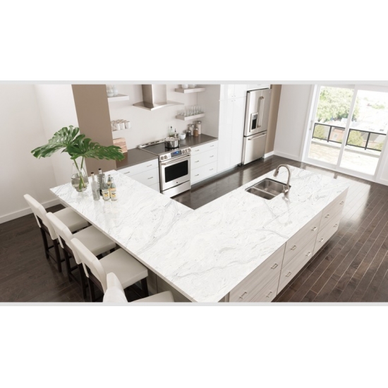 La placa de cuarzo Gucci 5041 ofrece una elegancia audaz y dramática, con una base negra profunda que contrasta con un llamativo veteado dorado. Las vibrantes vetas crean una sensación dinámica de lujo y glamour moderno. Esta placa es una declaración impactante, ideal para espacios contemporáneos que buscan un acabado expresivo y opulento.