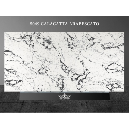 GOLDTOP 5049 Calacatta Arabescato Cuarzo Blanco con Vetas Negras