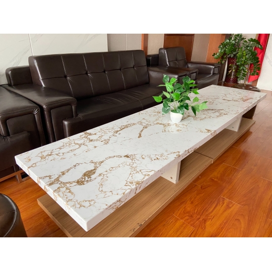 El cuarzo Calacatta está hecho de componentes naturales, pero es resistente, duradero y de baja porosidad, lo que hace que los productos de piedra de cuarzo sean prácticamente resistentes al desgaste. Su durabilidad, comodidad y un diseño uniforme son las principales razones de su creciente popularidad. El cuarzo está compuesto en un 90 % por piedra natural; el resto se compone de pegamento, tintes y aditivos que mejoran sus propiedades técnicas. Su permeabilidad al agua y resistencia a las manchas realzan la belleza del cuarzo.