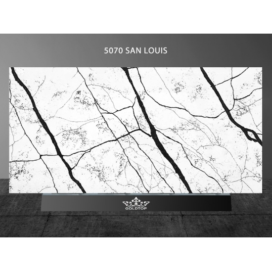 GOLDTOP 5070 Cuarzo Calacatta Blanco San Luis con Rayas Negras Gruesas