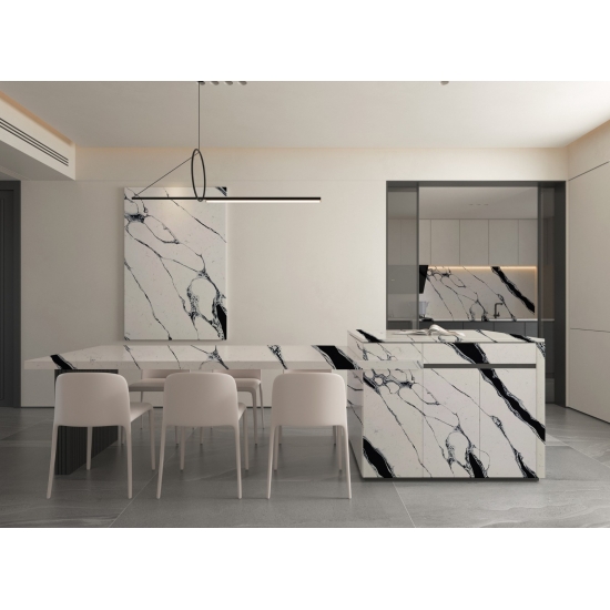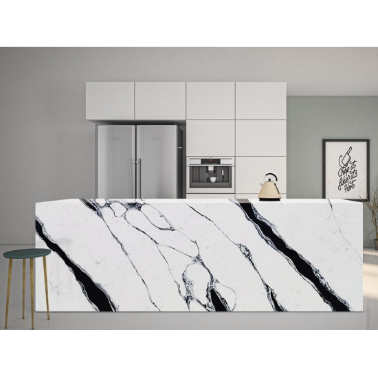 El cuarzo Calacatta Blanco Volakas 5044 es ideal para diversas aplicaciones gracias a su elegancia atemporal y diseño versátil. Este cuarzo pulido se utiliza comúnmente en encimeras de cocina, tocadores de baño y salpicaderos, donde su superficie blanca y limpia con suaves vetas grises aporta un toque de sofisticación. También es perfecto para revestimientos de paredes y suelos en espacios residenciales y comerciales.