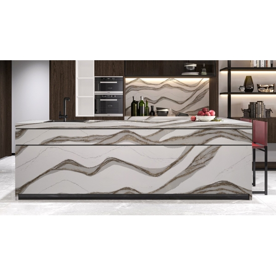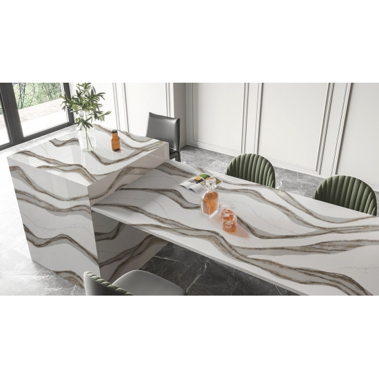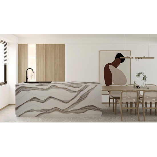 El cuarzo 5081 Skara Delicato es una piedra sofisticada que irradia elegancia con su suave fondo blanco, adornado con sutiles vetas grises. Este diseño se inspira en la belleza atemporal del mármol natural, pero ofrece la mayor durabilidad y el bajo mantenimiento del cuarzo. Las delicadas vetas se extienden fluidamente por la superficie, aportando un toque de refinamiento a cualquier espacio.