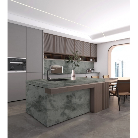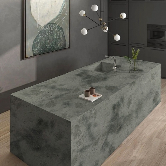 El cuarzo hormigón es un material de piedra artificial de cuarzo con un tratamiento especial. Similar a un acabado mate, el acabado de hormigón altera ligeramente el color del cuarzo en comparación con el clásico acabado pulido. Este acabado también se conoce como "cepillado" en el caso del granito.