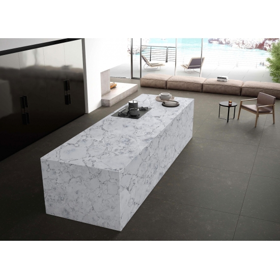 El cuarzo hormigón es un material de piedra artificial de cuarzo con un tratamiento especial. Similar a un acabado mate, el acabado de hormigón altera ligeramente el color del cuarzo en comparación con el clásico acabado pulido. Este acabado también se conoce como "cepillado" en el caso del granito.