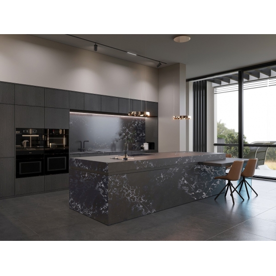 El cuarzo hormigón es un material de cuarzo artificial con un tratamiento especial. Similar a un acabado mate, el acabado de hormigón altera ligeramente el color del cuarzo en comparación con el clásico acabado pulido. Este acabado también se conoce como "cepillado" en el caso del granito.