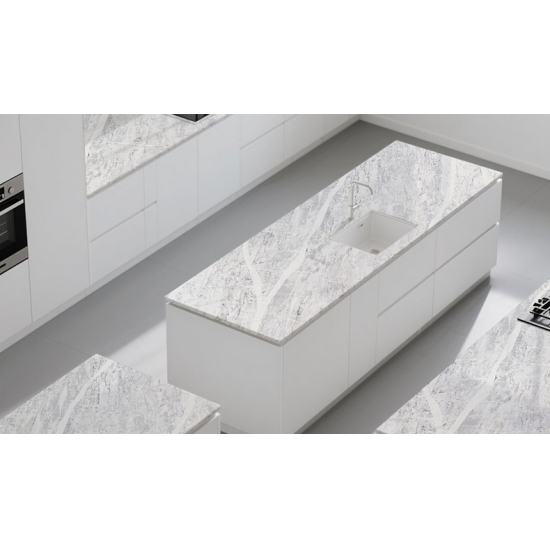 El Cuarzo de Ingeniería Splendix es una piedra de cuarzo artificial con un tratamiento especial que se diferencia de otras series por su aspecto más brillante. Este cuarzo aporta profundidad y textura al instalarse en paredes, suelos, encimeras, etc. Se puede utilizar para crear impresionantes piezas de pared y salpicaderos de lavabos en baños y cocinas. Este cuarzo funciona muy bien en zonas húmedas gracias a sus propiedades antigérmenes y resistentes a la humedad.