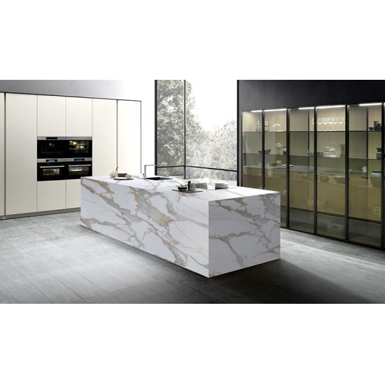 El cuarzo 7005 Calacatta Macchia Vecchia PD luce un impactante lienzo blanco, enriquecido por vetas audaces en gris carbón que contrastan con fuerza. Sus patrones dinámicos e intrincados crean un impacto visual potente y artístico. Esta losa encarna la lujosa declaración y la grandeza moderna, ideal para crear un punto focal en interiores sofisticados.