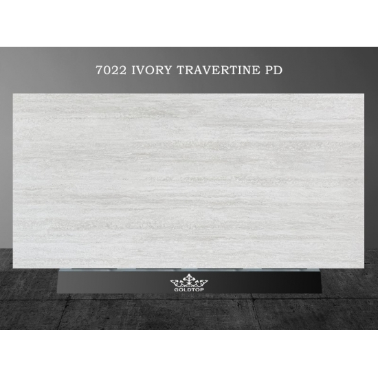 El cuarzo PD Travertino Marfil es una superficie de ingeniería experta que reproduce meticulosamente la textura del precioso travertino natural de Turquía. Sobre un fondo cálido y cremoso de color beige marfil, la avanzada tecnología de impresión digital captura fielmente las suaves gradaciones de color características de la piedra, sus tonos claros y oscuros entrelazados y sus delicadas vetas con texturas porosas. Esta combinación de texturas naturales crea un atractivo visual rico y dinámico, infundiendo a los espacios una atmósfera sobria y sofisticada. Su clásico tono neutro complementa a la perfección una amplia gama de estilos de diseño, desde el minimalismo contemporáneo hasta la elegancia tradicional.
