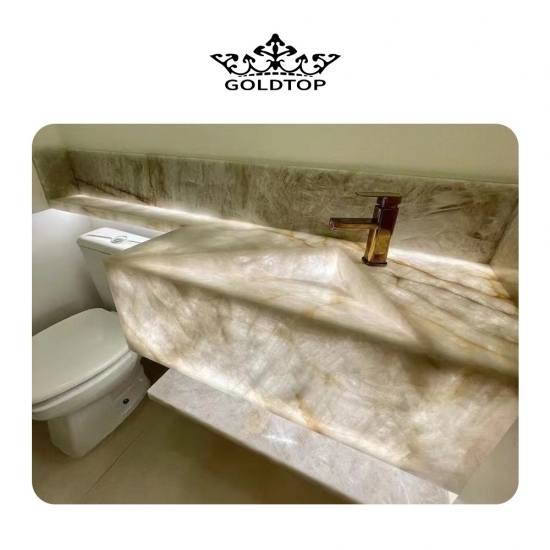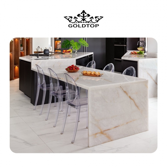 Información del producto · Nombre: Losas de ónix blanco  · Color: Blanco · Lugar de origen: China · Espesor: 3/8 pulgada, 3/4 pulgada · Tamaño: 2800 x 1800 mm, 2800 x 1600 mm, etc. · Acabados disponibles: Pulido, Pulido, Flameado, Cuero  · Aplicación: Hotel, Decoración de interiores