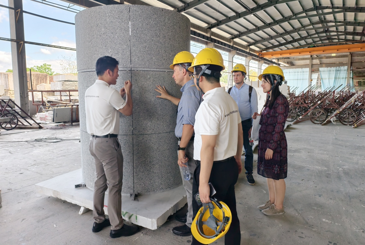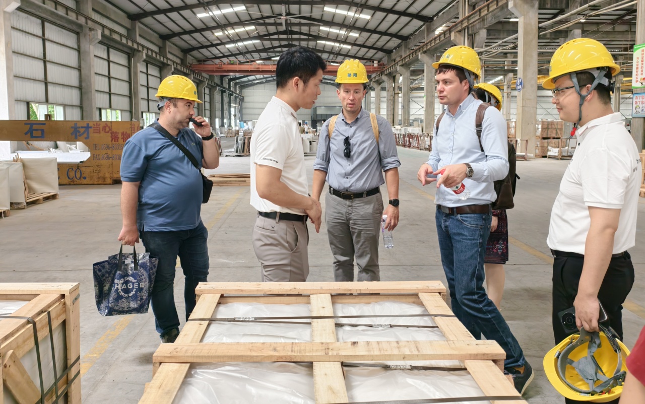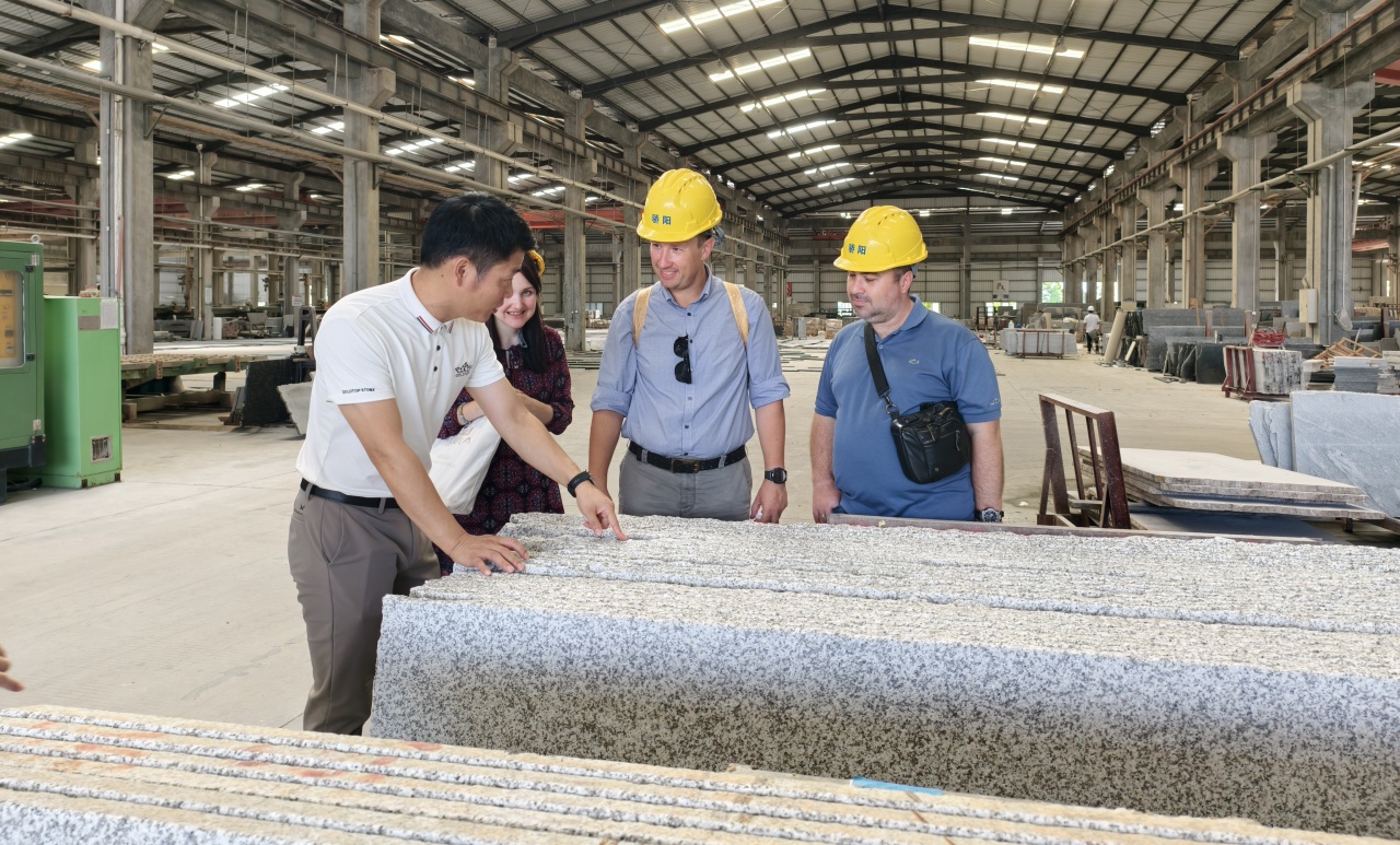 Durante el recorrido, los invitados presenciaron todo el proceso de producción, desde la selección de la piedra en bruto hasta el corte, pulido y acabado. Experimentaron de primera mano cómo nuestra combinación de equipos modernos, artesanía experta y un estricto control de calidad garantiza precisión, consistencia y acabados de alta calidad en cada pieza. La visita destacó la solidez de nuestras operaciones y nuestro compromiso con la excelencia. piedra natural fabricación.