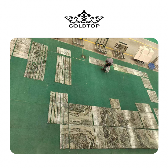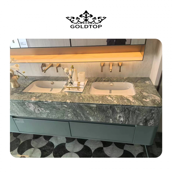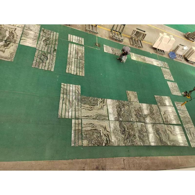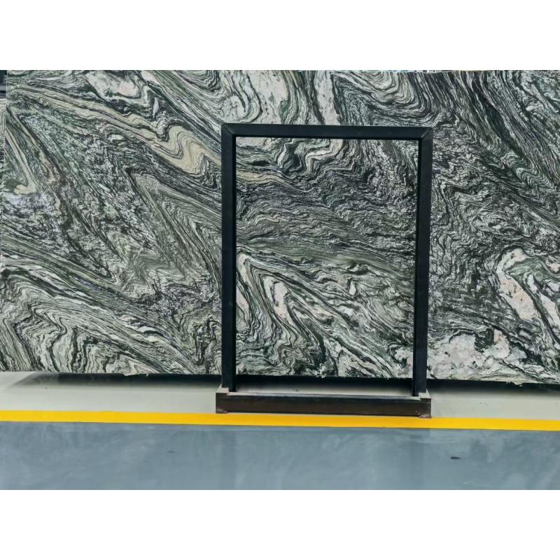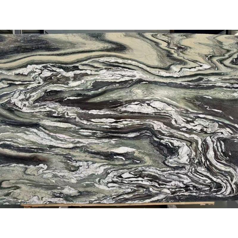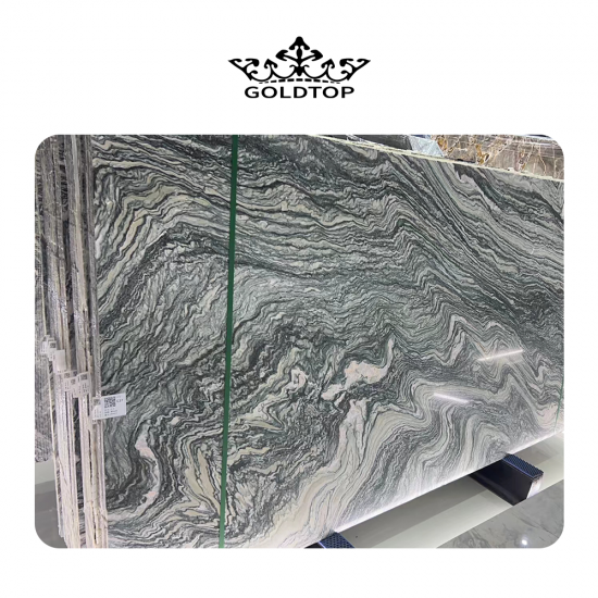Losas y baldosas de mármol verde paisajístico Presentan una base verde intenso y profundo que evoca la belleza de frondosos bosques y paisajes naturales de montaña. Sutiles variaciones de tono, que van del verde oliva al esmeralda, crean profundidad y carácter, mientras que las intrincadas vetas en tonos más claros de blanco, beige o gris forman patrones dinámicos que evocan el agua fluyendo, la niebla o los contornos de las montañas. Cada placa es una obra de arte natural única, pulida con un acabado de alto brillo que realza su brillo y resalta el impactante contraste entre el vibrante fondo verde y sus delicadas vetas.