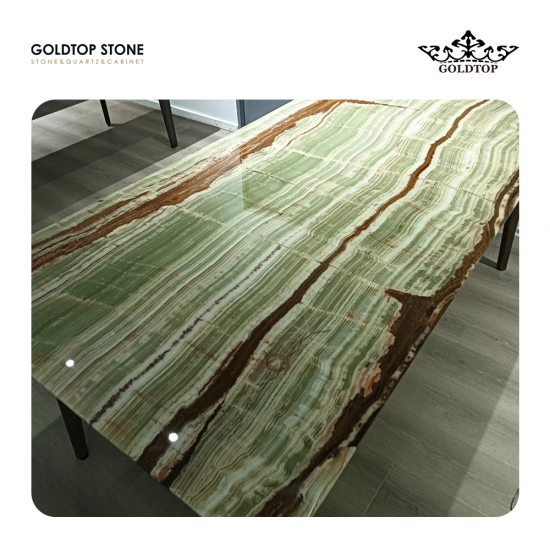 Polished,Honed,Flamed,LeatherÓnix Esmeralda Es un ónix verde translúcido de primera calidad procedente de Pakistán, con un suave fondo verde y vetas distintivas que recuerdan al bambú. Gracias a su fina textura, superficie lisa y excelentes propiedades de transmisión de luz, este material crea impactantes efectos visuales al retroiluminarse, lo que lo hace ideal para aplicaciones de interiorismo de alta gama. Ampliamente utilizado en villas de lujo, paredes decorativas, encimeras y paneles decorativos, el ónix verde realza tanto espacios clásicos como contemporáneos. Su color único y su translucidez natural lo convierten en la opción preferida de los diseñadores que buscan soluciones de piedra elegantes e inspiradas en la naturaleza, con un fuerte impacto visual y un profundo significado cultural.